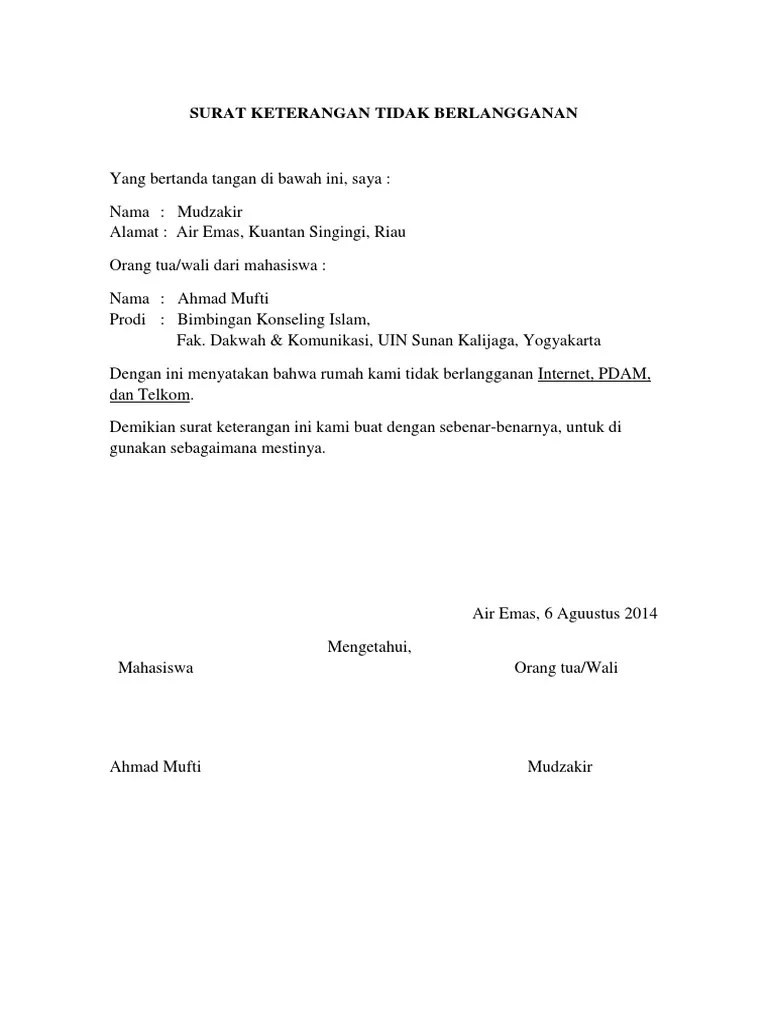 Sikayu, rt 03/09 kecamatan buayan. Surat keterangan tidak berlangganan yang bertanda tangan di bawah ini, saya : 15 contoh surat penawaran kerjasama barang jasa dan. Ketua rt 002, dukuh dempok, . Surat keterangan tidak berlangganan pdam / surat pernyataan pada formulir pdam tirta marta yogyakarta dedy selalu milisdad.